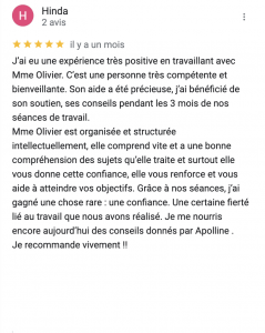 Bonjour, je m’appelle Apolline Olivier et je vous reçois dans mon cabinet à Orléans Métropole ou en visio.